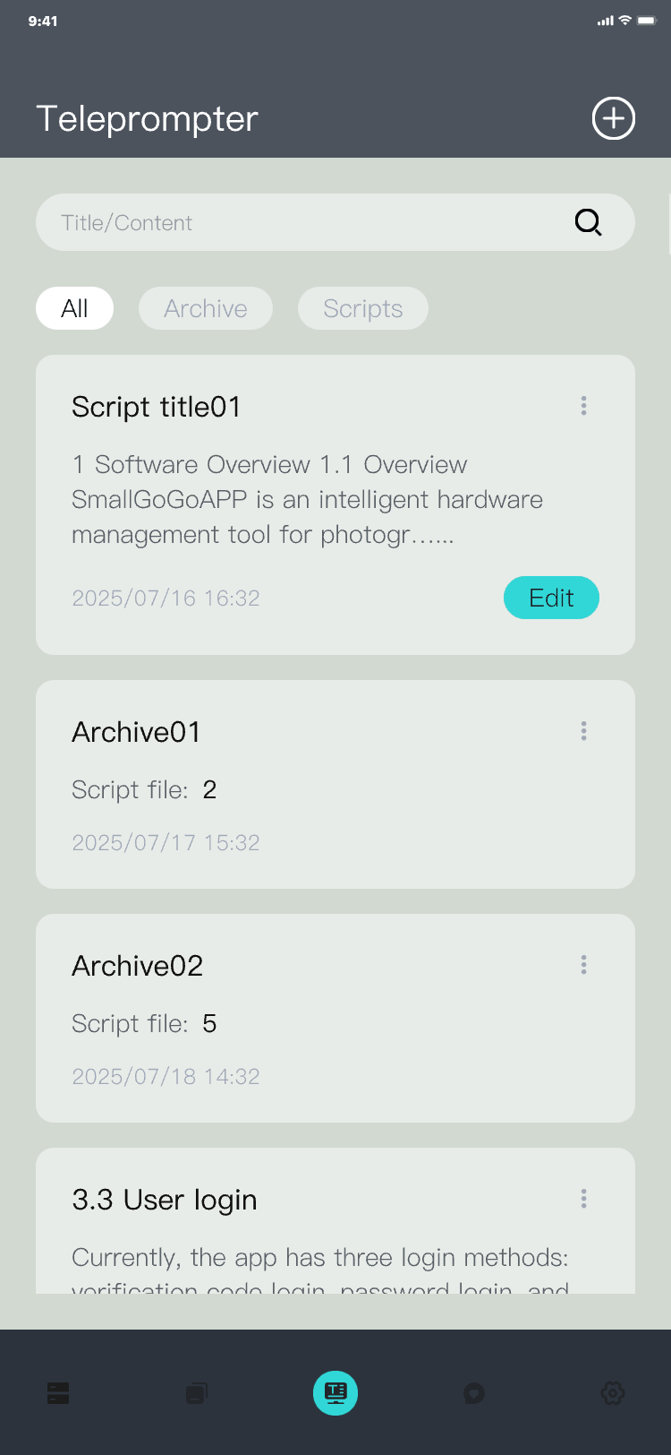 Add Scene Process: Scene List Page → Click '+’ → Scene list automatically adds a new data