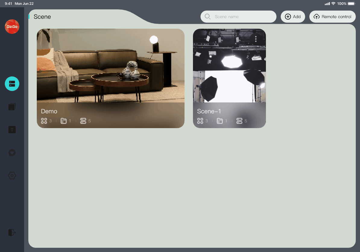 Add Scene Process: Scene List Page → Click '+’ → Scene list automatically adds a new data