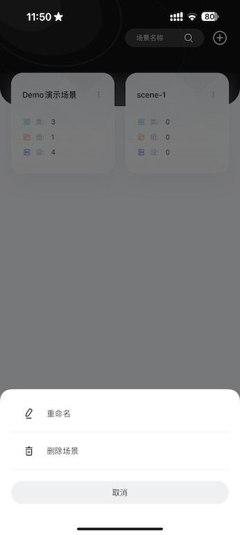 用于集中管理当前用户已添加的设备(用户从场景中新增的设备,也会自动同步到设备中)。