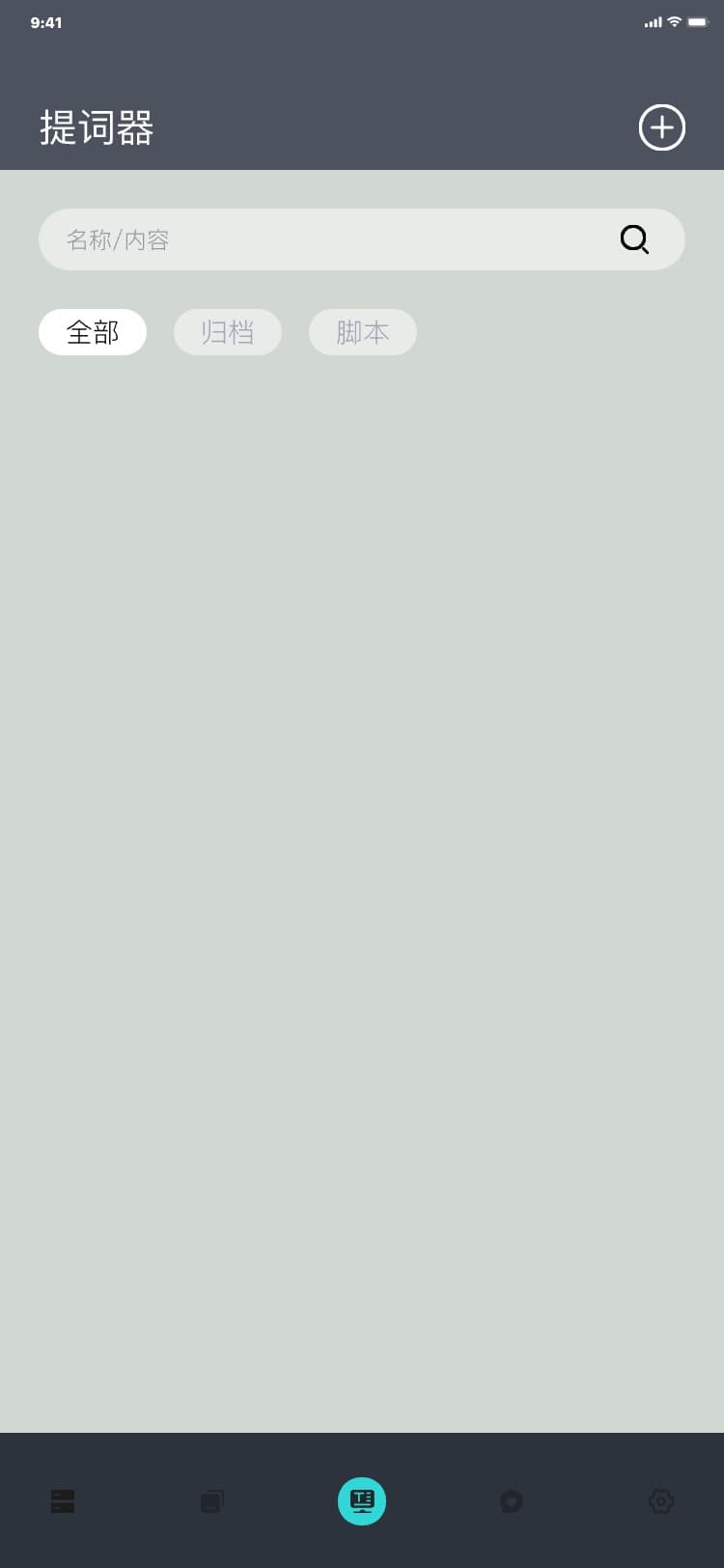 通过底部菜单切换流程:设备页(场景页)(提词器)(互动页) → 点击底部菜单第五个图标 → 设置页,界面如图: