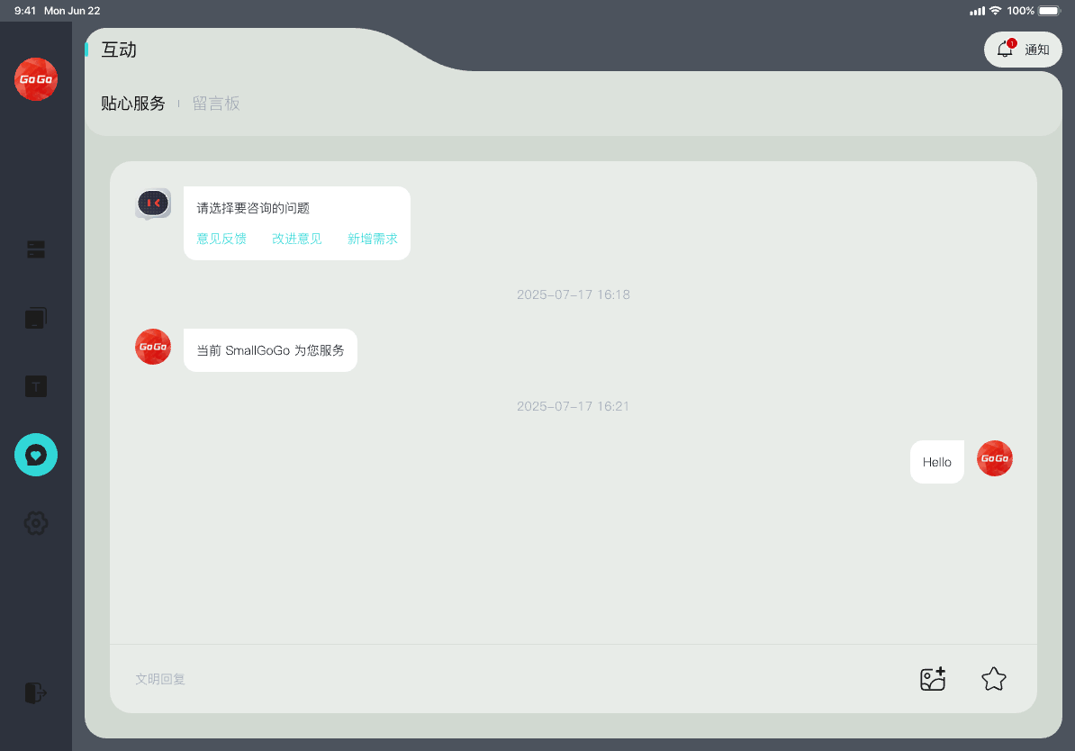 方法一:“ 互动 ”(底部菜单)-“ 贴心服务 ”(顶部页签);